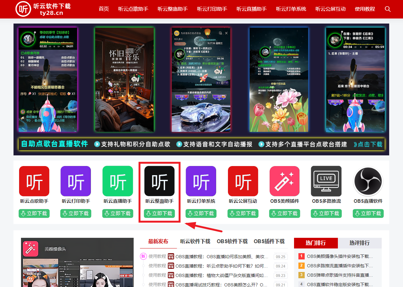 除了上述两个下载地址,还可以直接访问【听云软件下载】官方网站:ty28.cn 去下载,如下图所示,查看红色箭头所指的位置,然后点击绿色按钮【立即下载】即可